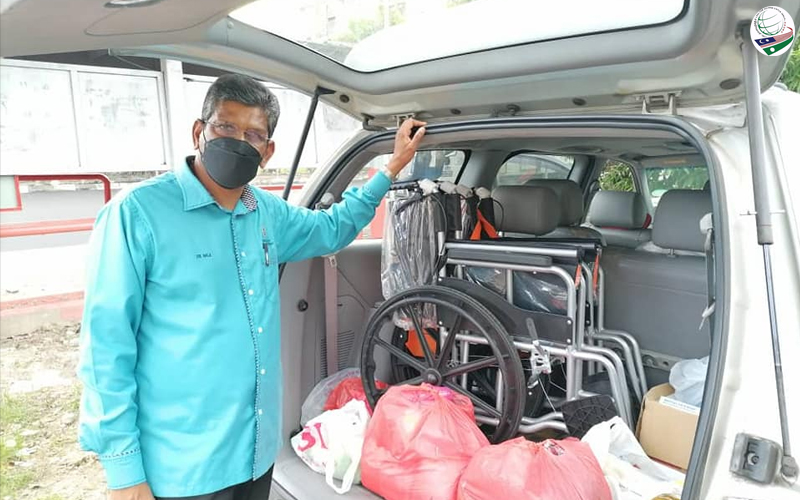 DHPP Terengganu menyumbangkan kerusi roda dan barang keperluan kepada mangsa.