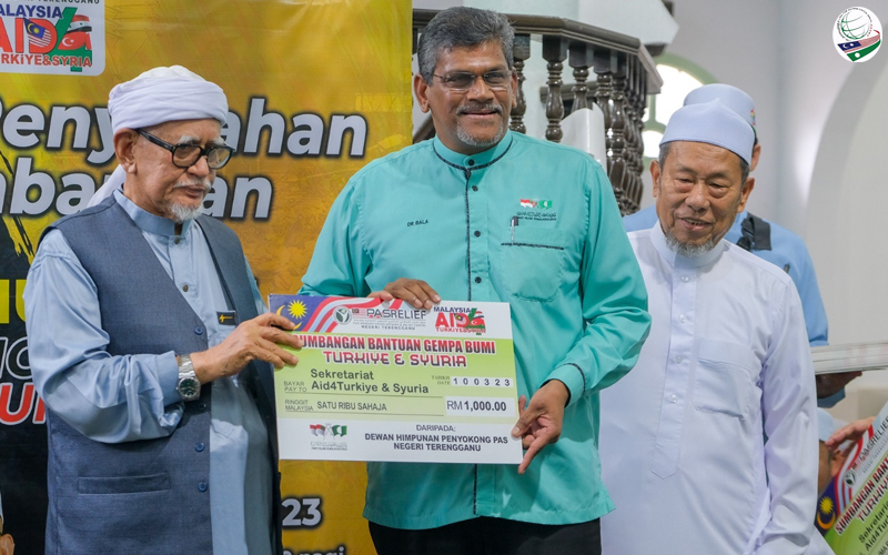 Di Masjid Rusila, Dr. Balachandran mewakili DHPP Terengganu semalam memberi sedikit sumbangan dengan penuh kasih sayang untuk Tabung Kemanusiaan Turkiye dan Syria anjuran BPPNT.